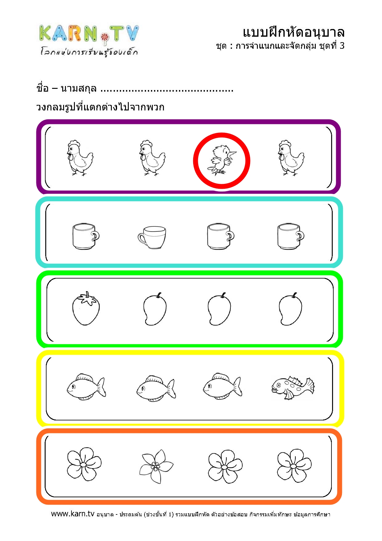 - แจกฟรี!! ไฟล์ภาพ แบบฝึกหัดจับคู่ และการจัดกลุ่ม สำหรับลูกวัยอนุบาล