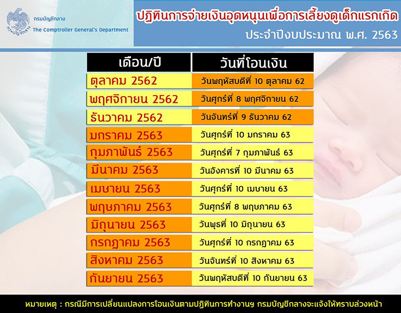 ขอขอบคุณข้อมูลจาก: โครงการเงินอุดหนุนเพื่อการเลี้ยงดูเด็กแรกเกิด