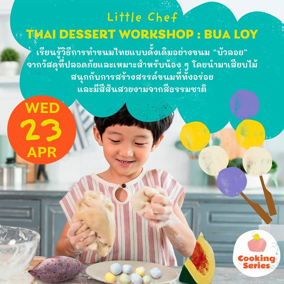 วันที่ 23 เมษายน 2568 กิจกรรม * Little Chef * Thai Dessert Workshop : Bua Loy