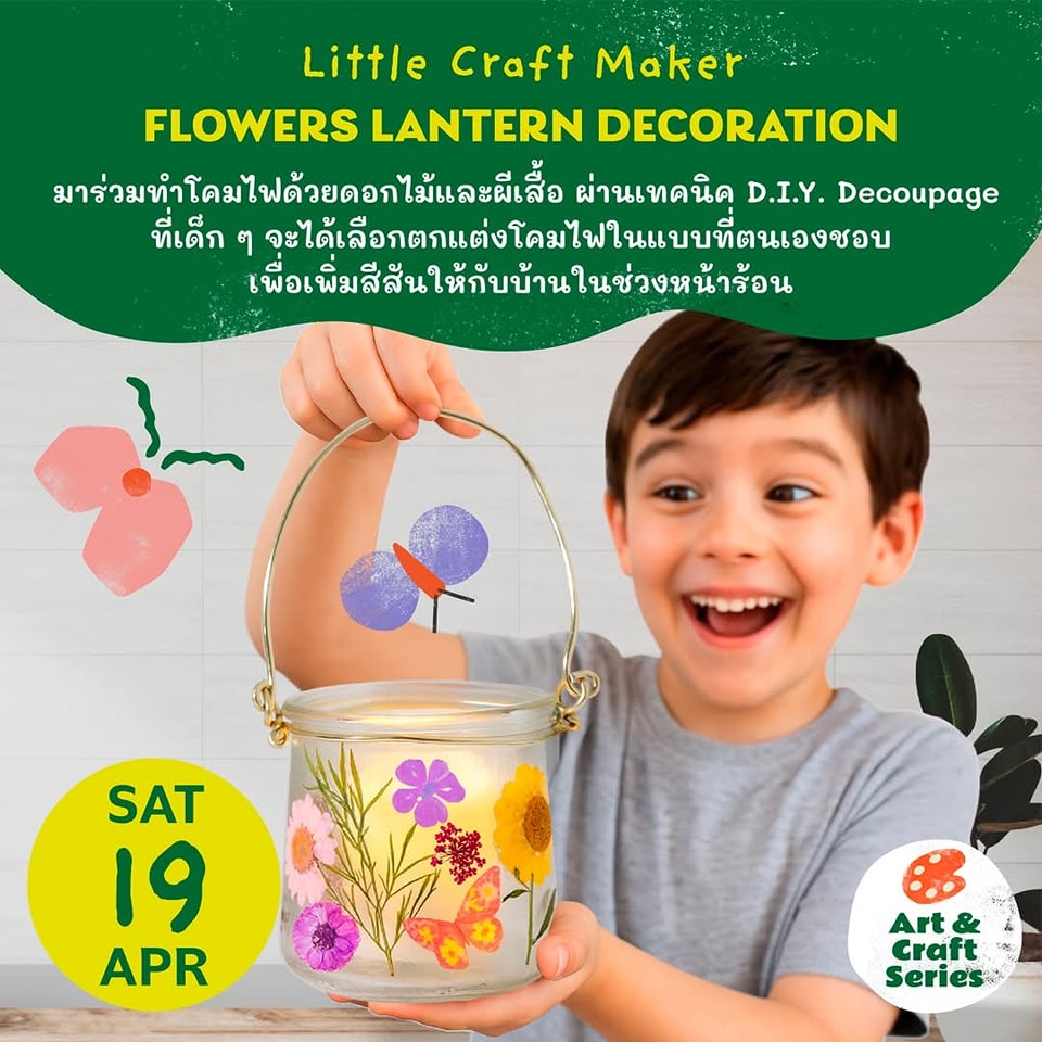 วันที่ 19 เมษายน 2568 กิจกรรม *Little Craft Maker* Flowers Lantern Decoration
