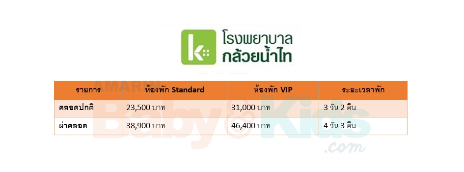 แพคเกจคลอด โรงพยาบาลกล้วยน้ำไท