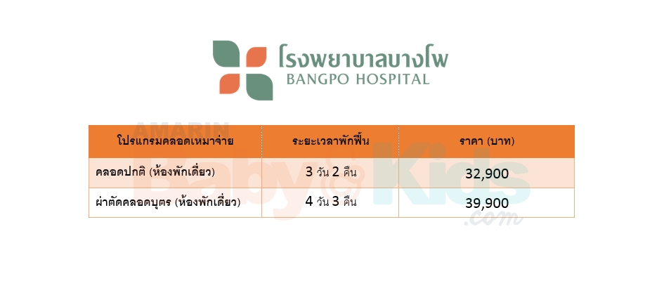 *** การเข้าร่วมโปรแกรมคลอดแบบเหมาจ่ายขึ้นอยู่กับ สภาวะของมารดา ทารก และดุลยพินิจของแพทย์ดูรายละเอียดแพคเกจคลอดเพิ่มเติม : bangpo-hospital.com