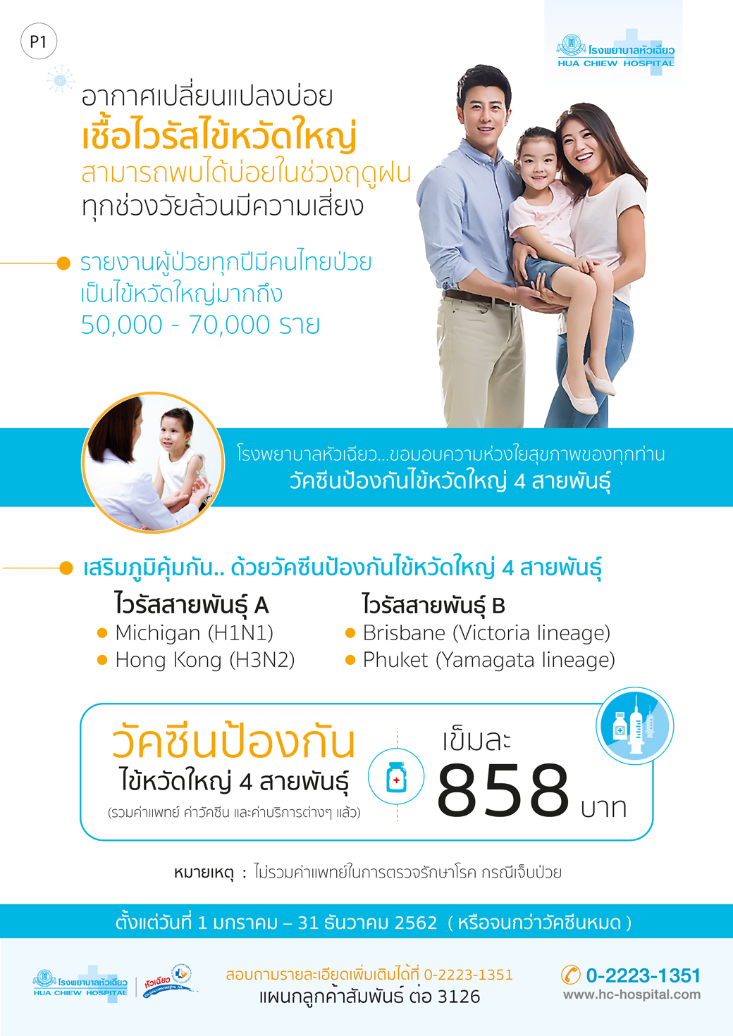 ราคาวัคซีนไข้หวัดใหญ่ 2562 โรงพยาบาลหัวเฉียว