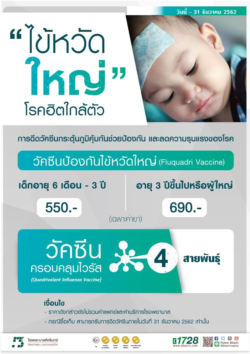ราคาวัคซีนไข้หวัดใหญ่ โรงพยาบาลศิครินทร์